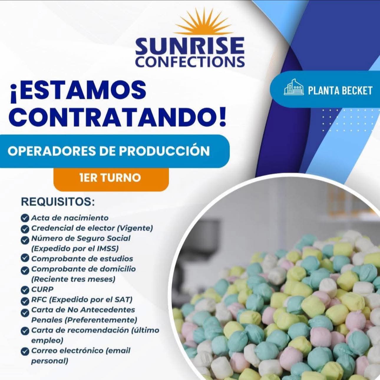 ESTAREMOS CONTRATANDO Operadores de Producción en Sunrise Planta Jerónimo! 📢