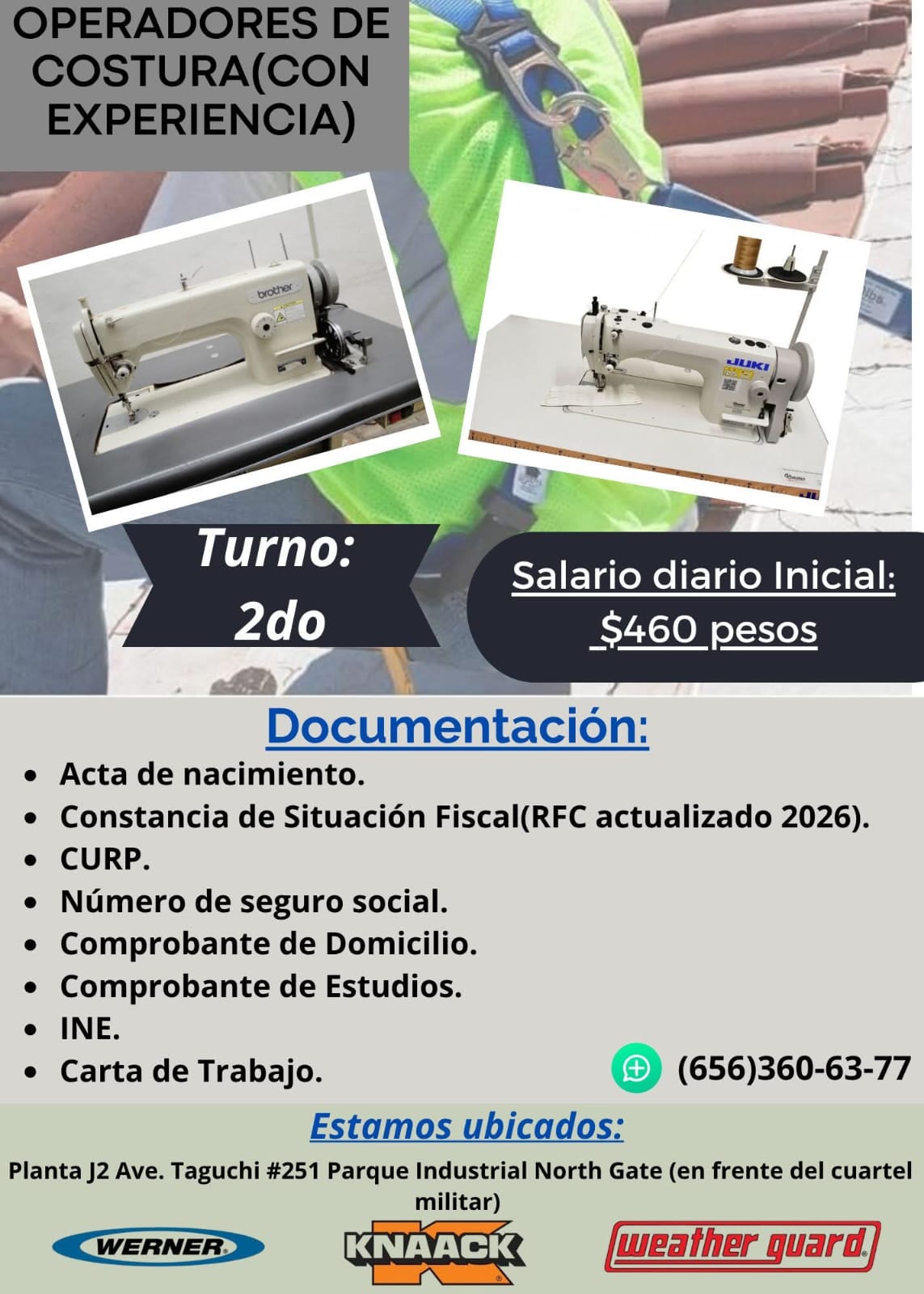 ⚠️ Experiencia en maquila indispensable ⚠️ Llevar documentación completa