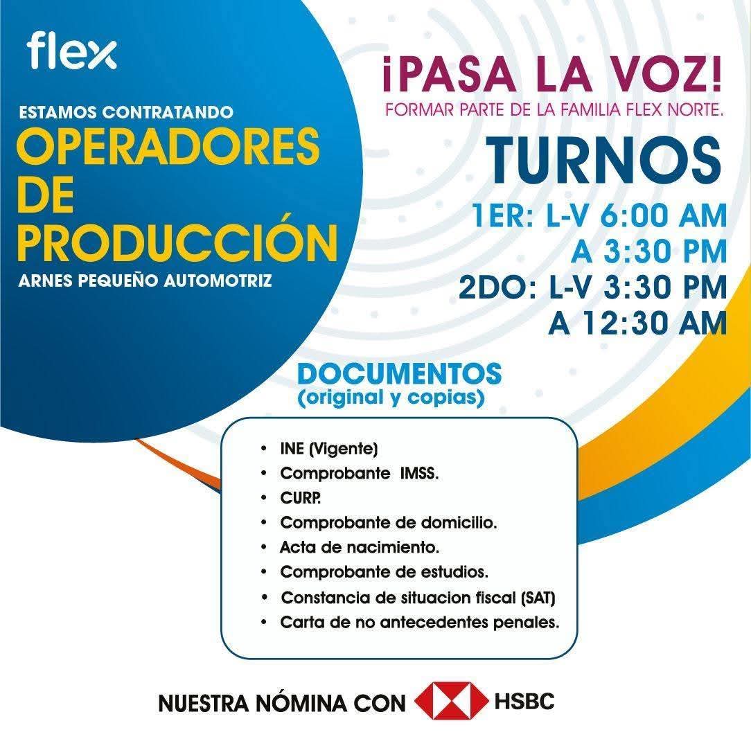 Hoy miércoles 07 de Enero 2026, tendremos contratacion en Flex Automotive! en nuestra nueva ubicacion Blvr Independencia☀️