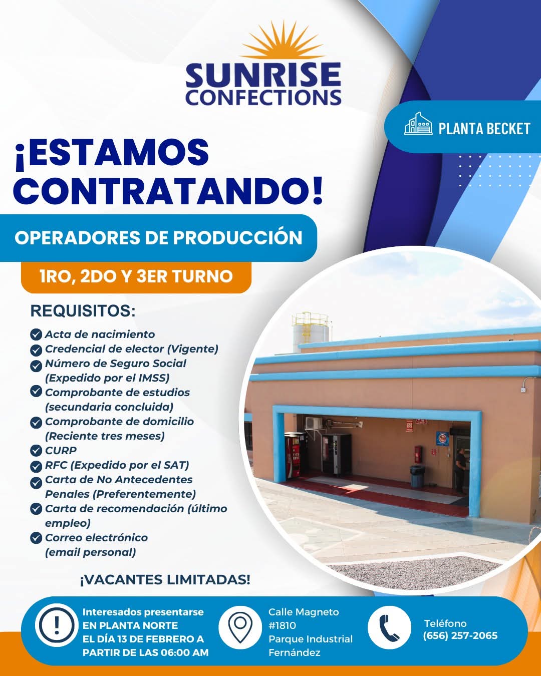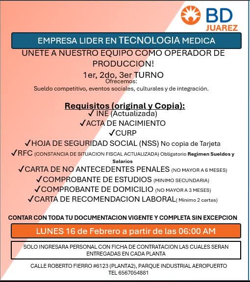 ↗️El proceso de contratación y recepción de personal será jueves 19 de febrero (11 lugares únicamente ) a las 6:15 am ( importante ser puntuales ) en dirección: