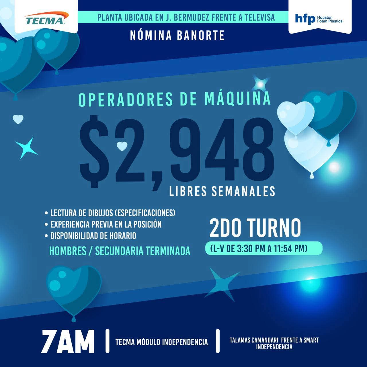3 lugares para el tercer turno de Martes a viernes de 12:30am a 6:30am y sábados de 12:00am a 6:30am