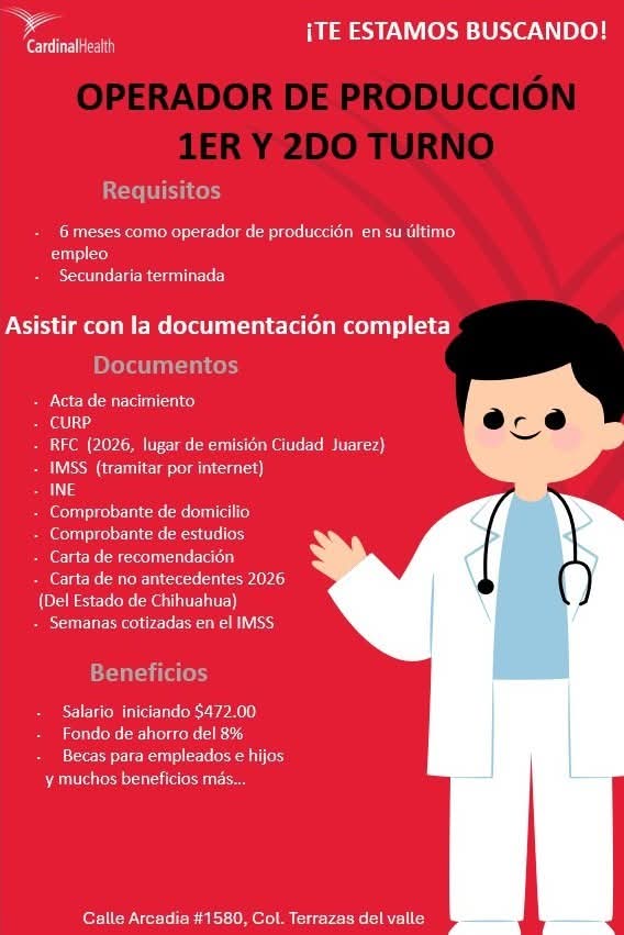 • Contar con experencia preferiblemente más no indispensable en industria médica , uso de microscopio , tablillas , soldadura con cautín , manejo de piezas pequeñas