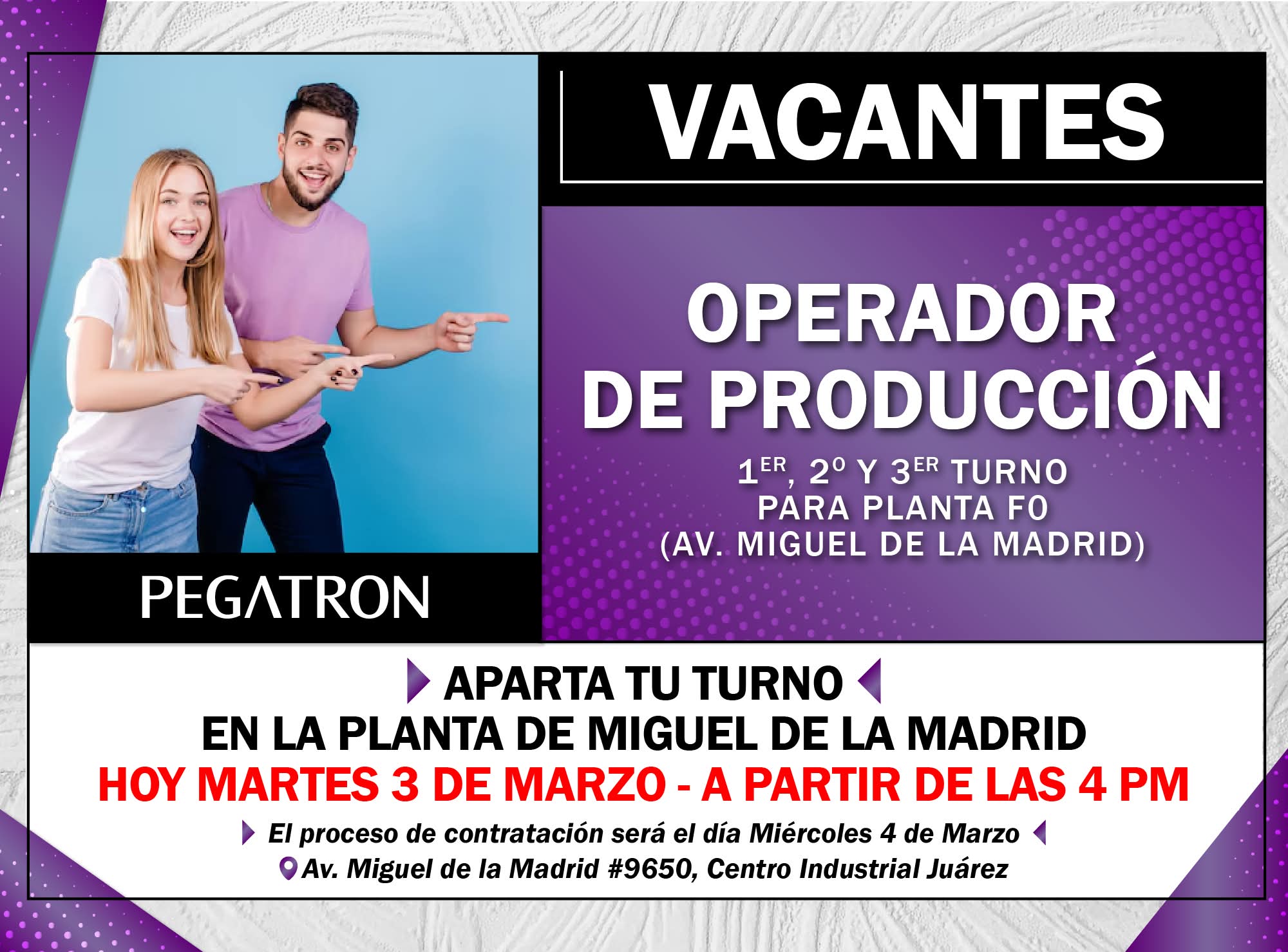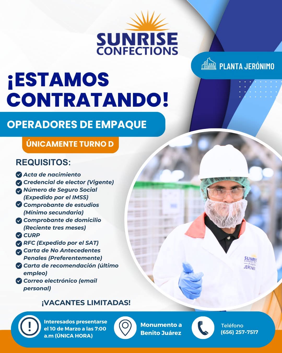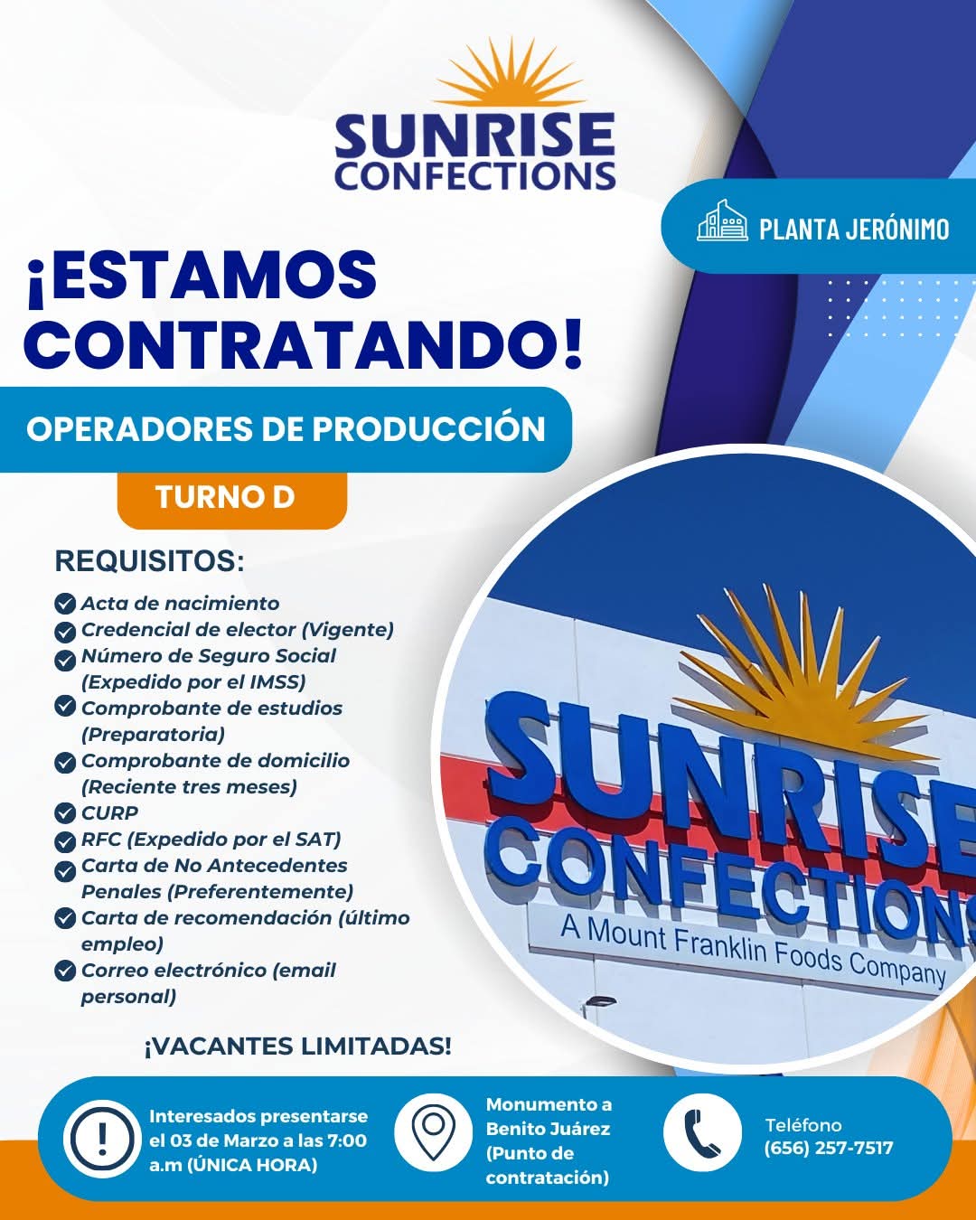 ↗️El proceso de contratación y recepción de personal será lunes 02 de marzo (10 lugares únicamente , ) a las 6:15 am ( importante ser puntuales , no es necesario acampar ni apartar lugar ) en dirección: