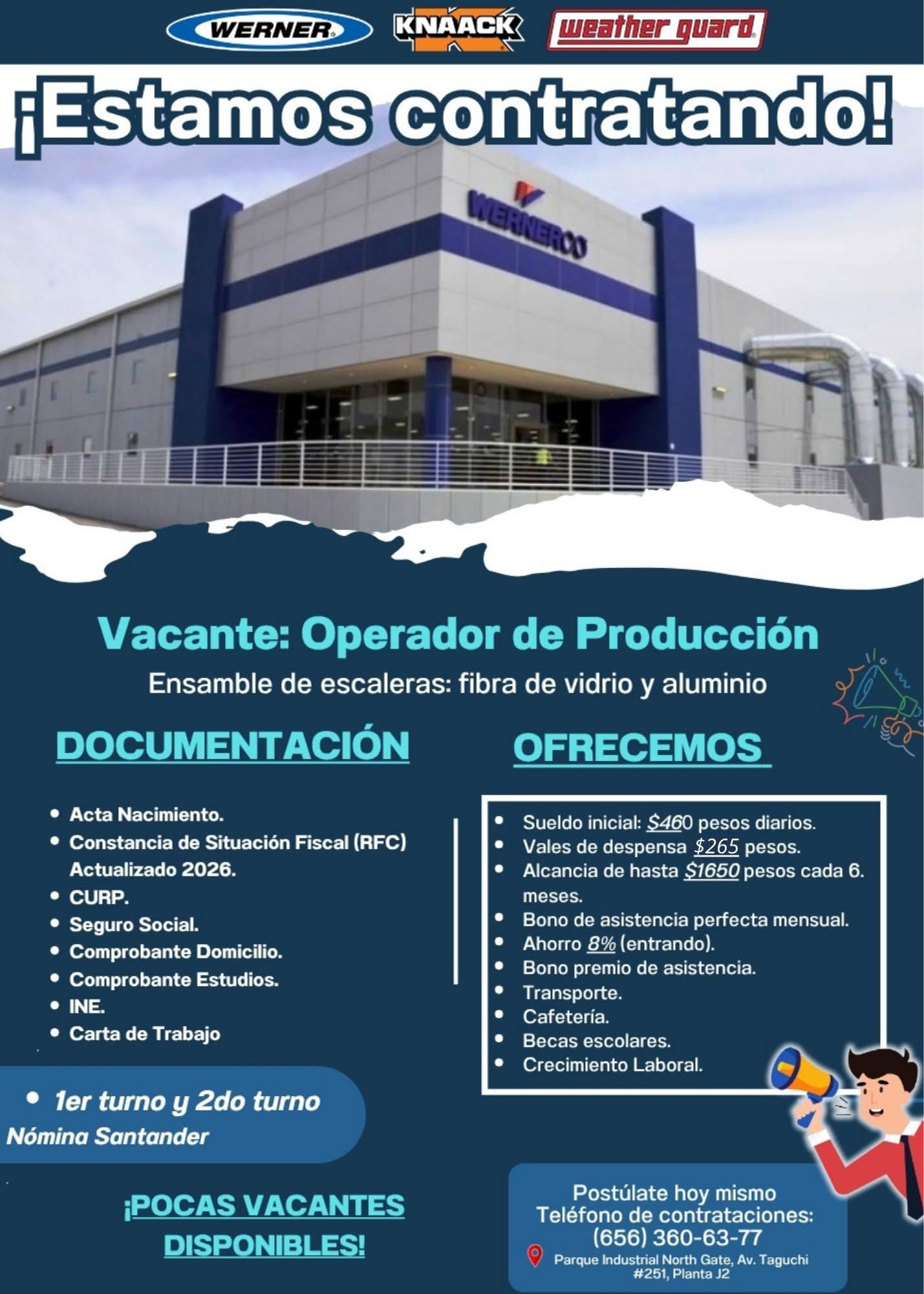 🔹Estamos contratando Operadores de Producción para ensamble de escaleras de fibra de vidrio y aluminio.🔹