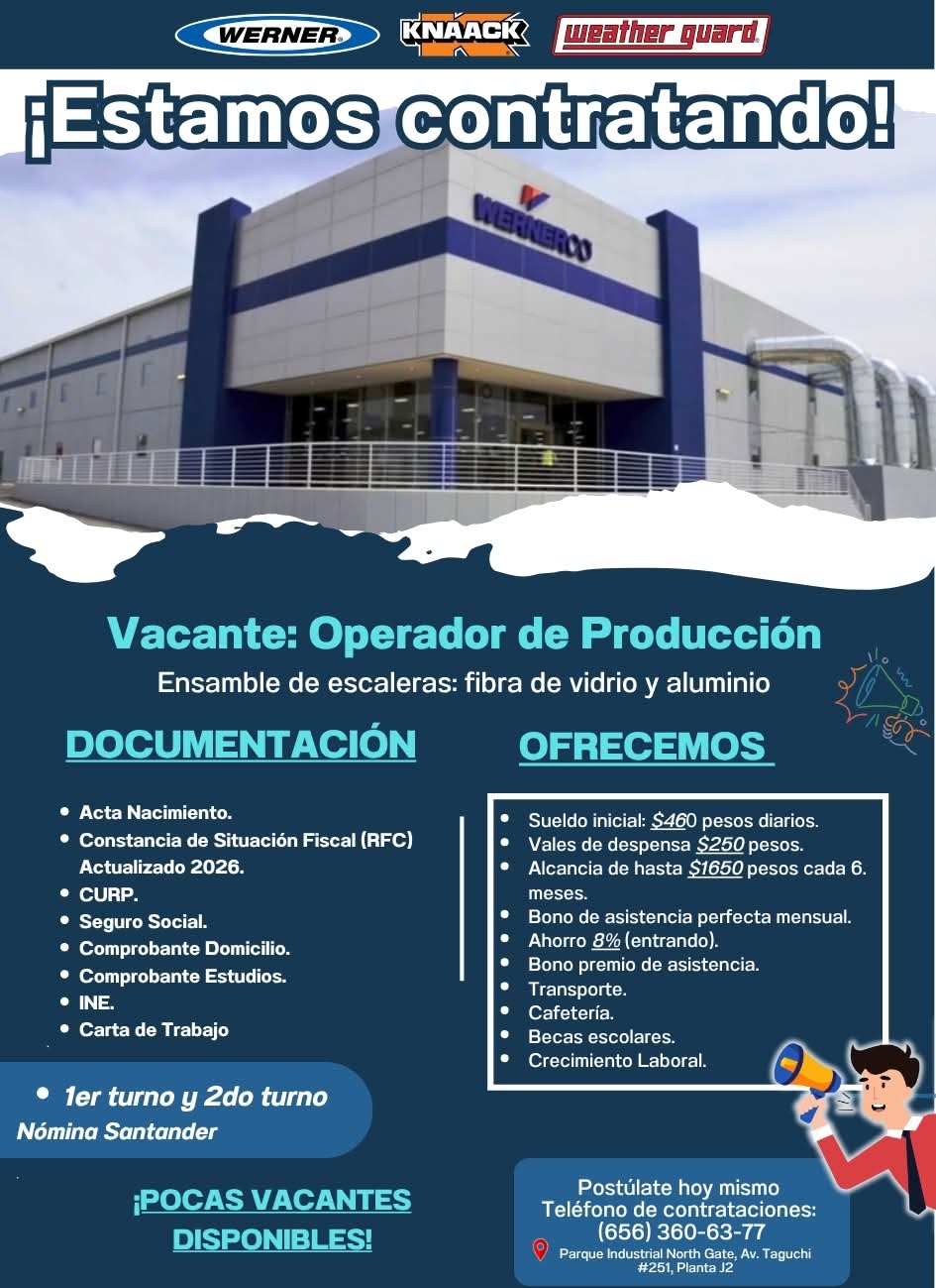 🟠Estamos contratando Operadores de Producción para ensamble de escaleras de fibra de vidrio y aluminio.🟠