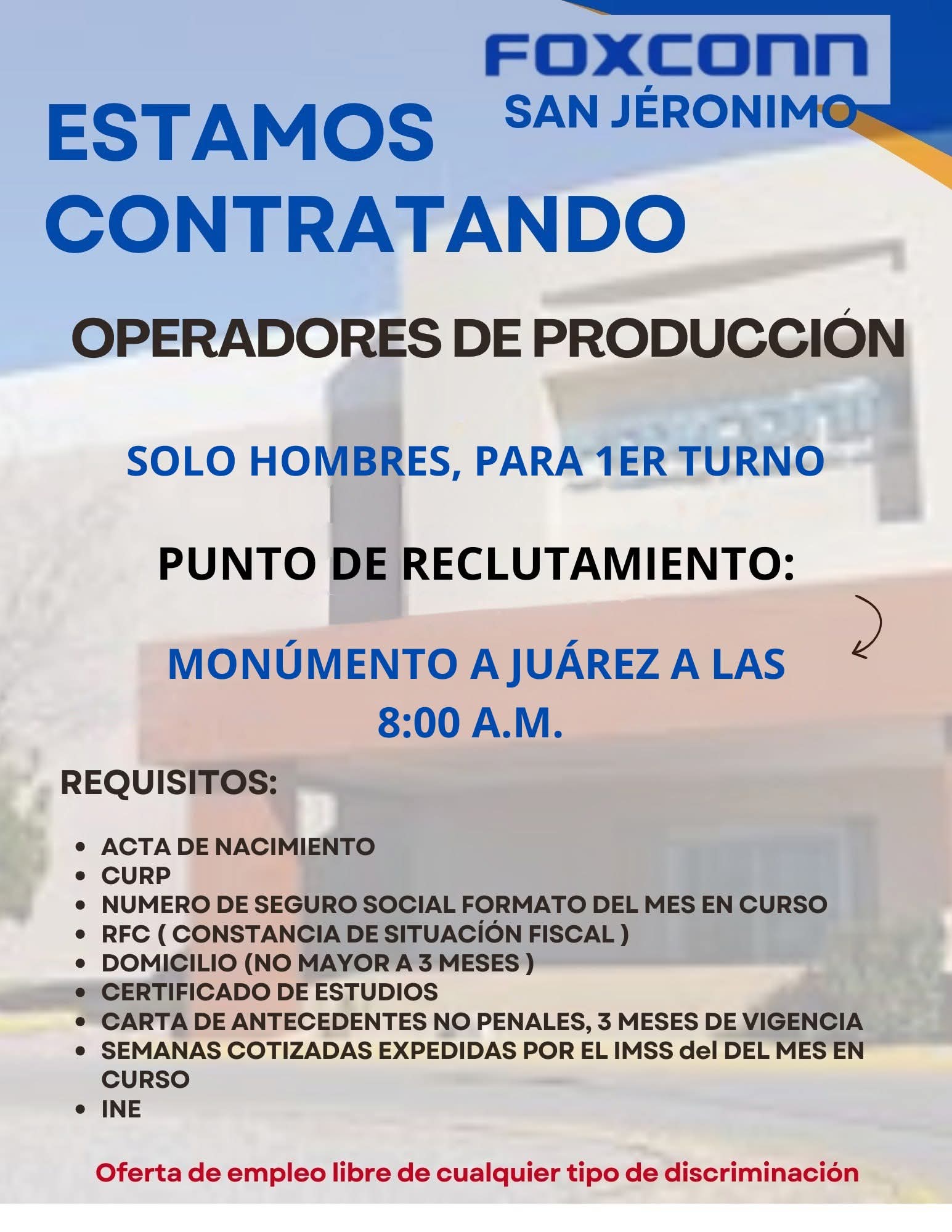 🚩Reclutamiento solo en el punto, no llegar a planta.