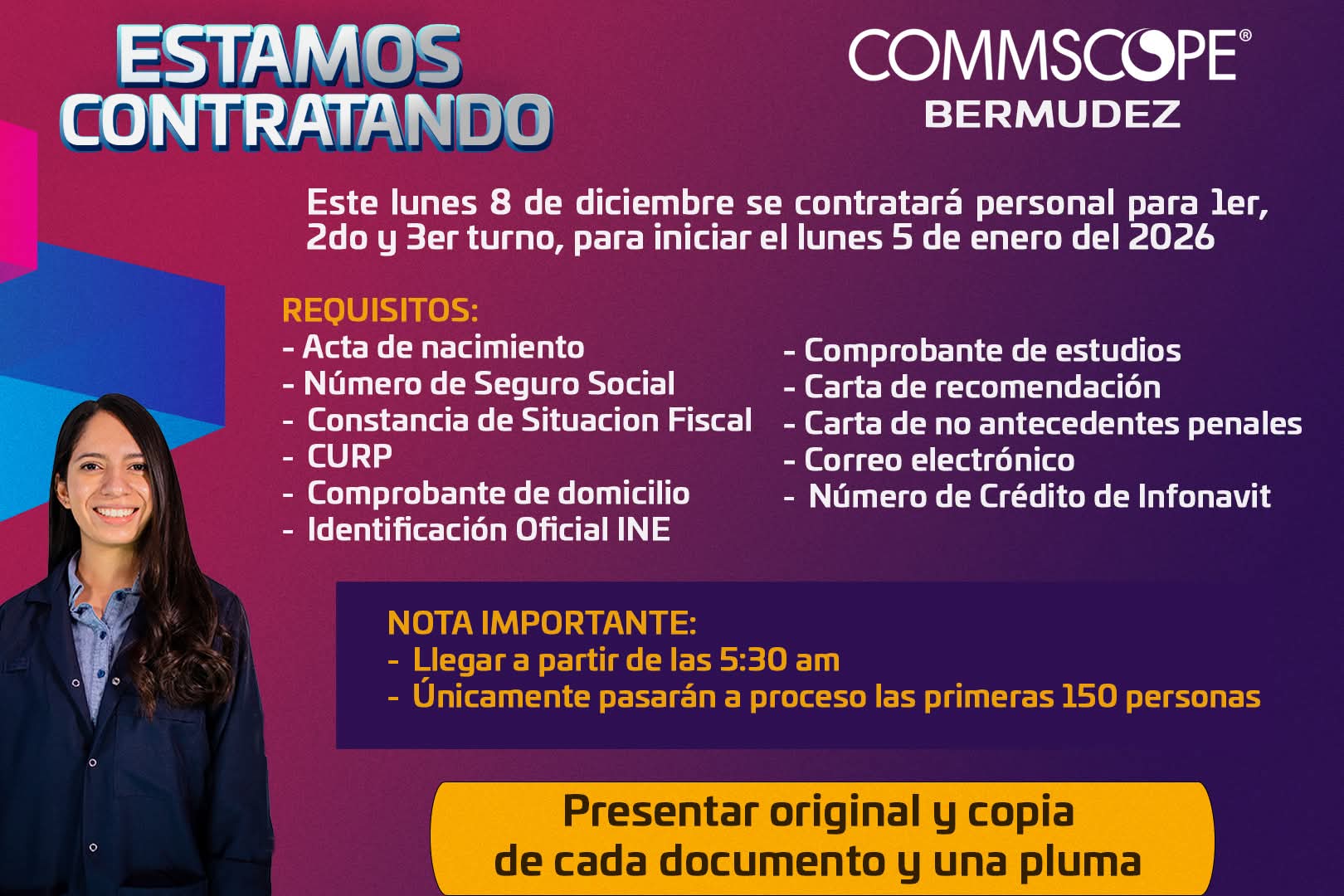 📋 Acude mañana miércoles 10 de diciembre en planta 1 a las 6:00am para contratación con tu documentación completa y correo electrónico vigente (asegúrate de recordar tu contraseña).