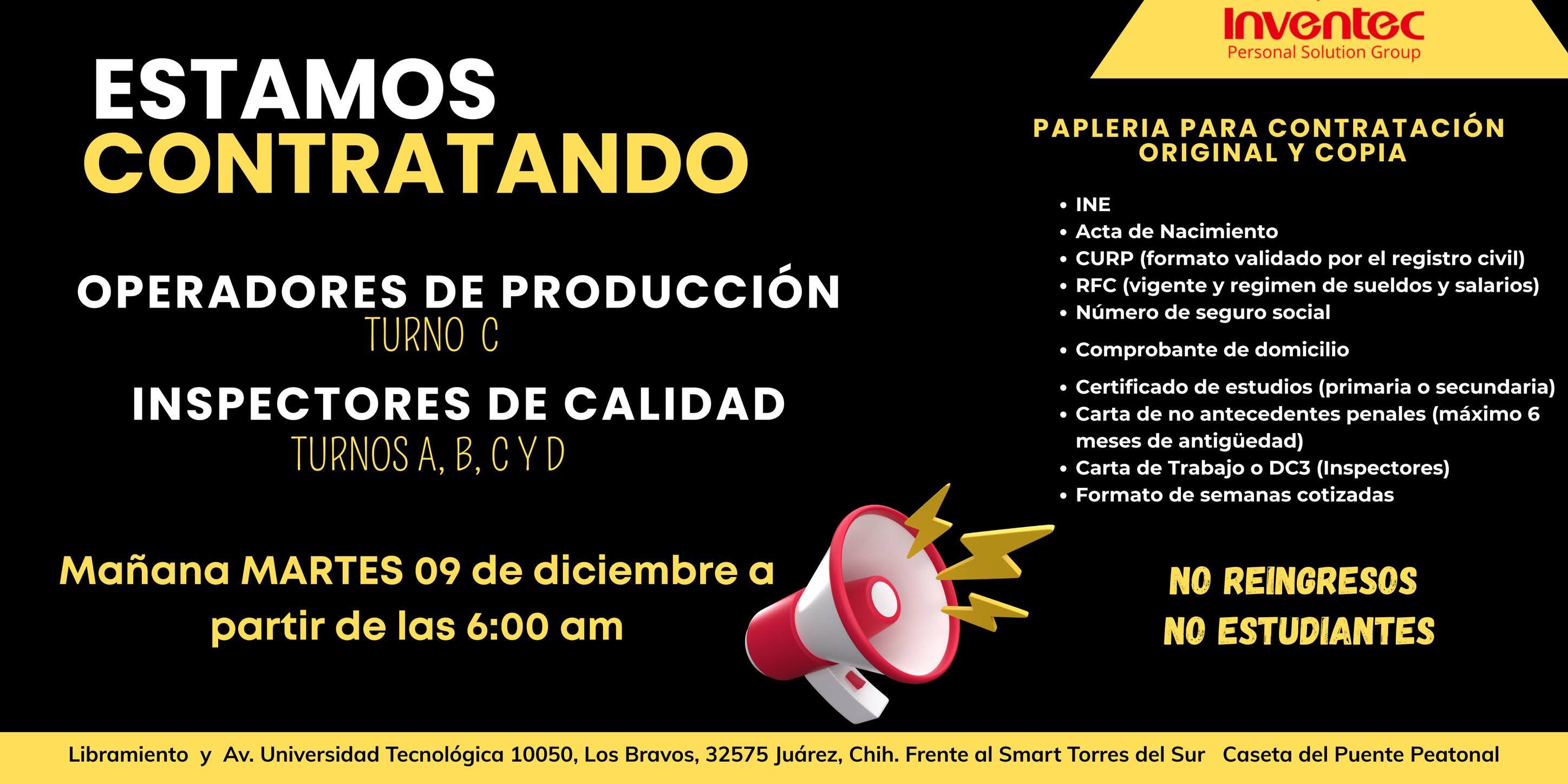 ❗️GRAN CONTRATACIÓN DE INSPECTORES DE CALIDAD Y OPERADORES DE PRODUCCIÓN ❗️