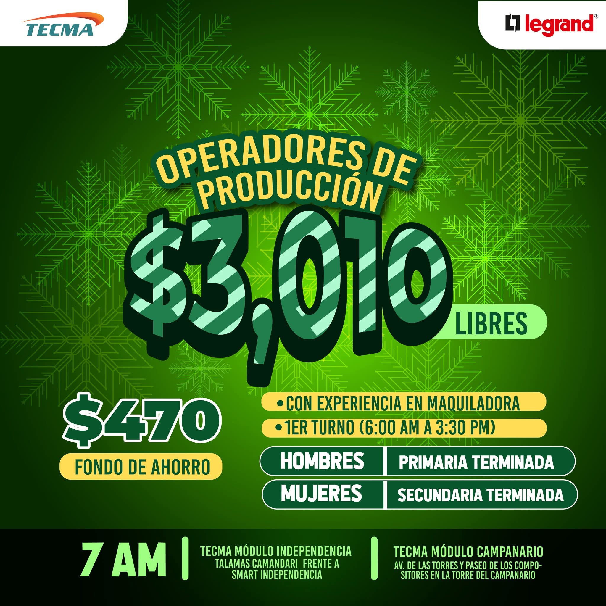 OPERADORES DE PRODUCCIÓN PARA PRIMER TURNO 🚨🚨